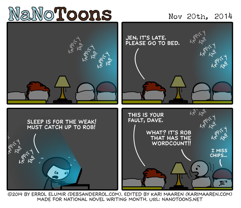 Competition is one of the best driving forces of NaNoWriMo! I’ve watched two ladies from my region leapfrog each other on word count, and the verbal sparring that goes along with it on our Skype chat makes everyone laugh. They are driving each other forward, and it’s great!