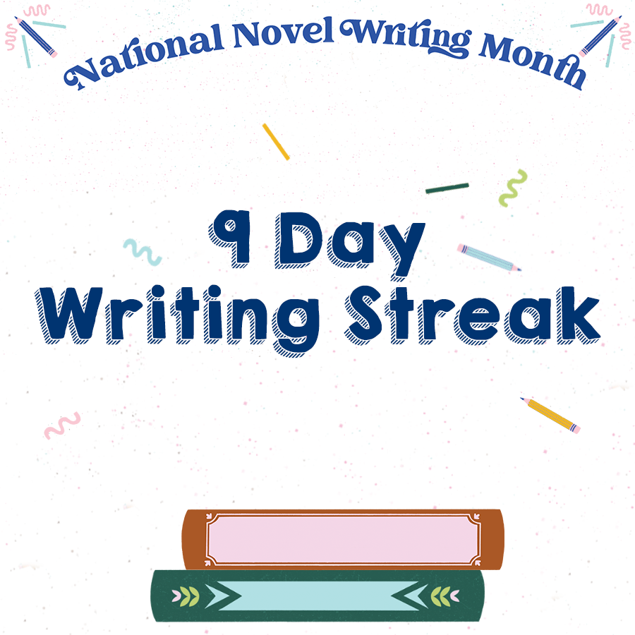 The Words: 224 total words just to be able to keep my writing streak. Every year I have at least one day like this—banging out some words just to be able to say I wrote. Today it was due to 3 (most likely) unrelated sources of pain working together it impossible to concentrate for very long. One of those is a sinus infection causing a near-constant headache in the back of my head. Hopefully it won’t last long, because it wipes me out and at times stops me in my tracks.