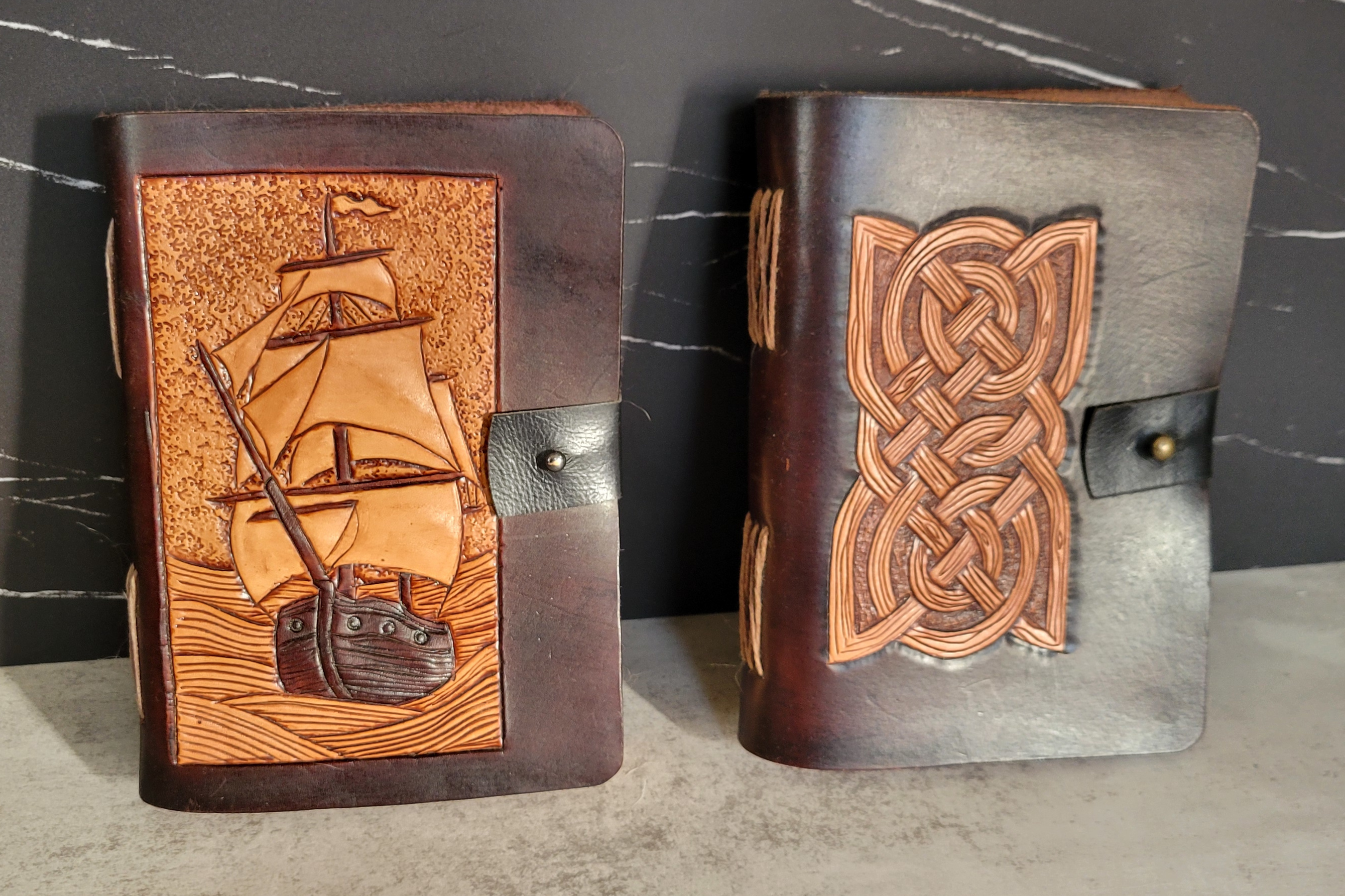 In 2020, my husband had a notebook cover custom-made for me that is still the shining gem of my collection. Then in 2024, he got these two beautiful notebooks (not custom this time and not covers, but handmade notebooks) from the same local leatherworker as part of a clearance sale. He knows that leather or leather-like covers are a weakness of mine and that I love a deal, so these were a perfect gift.