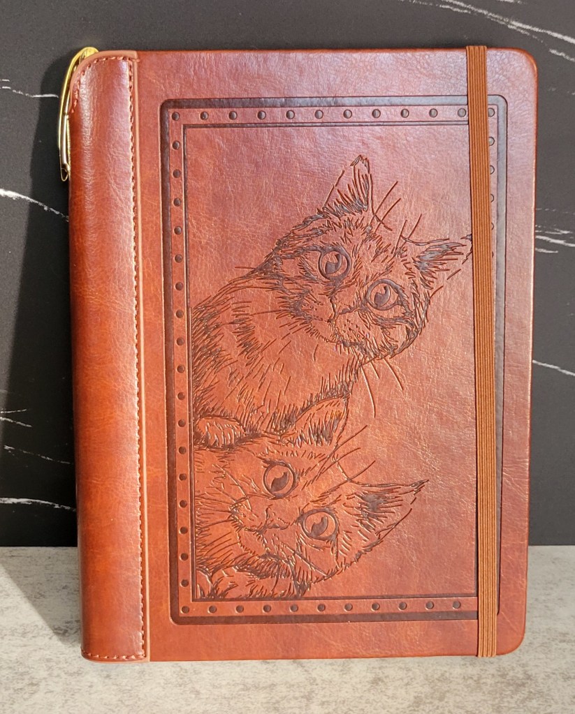 These were both Christmas gifts—the one on the left from my oldest sister in 2024, and the one on the right from my next oldest sister in 2025. When we did our gift exchange the last few years, on my list of ideas for my secret person to buy for me, I put something like “unique or interesting notebooks.” I really like that what they came up with both reflects what they think I’ll like (and I definitely do) and also their own personalities. So fun!