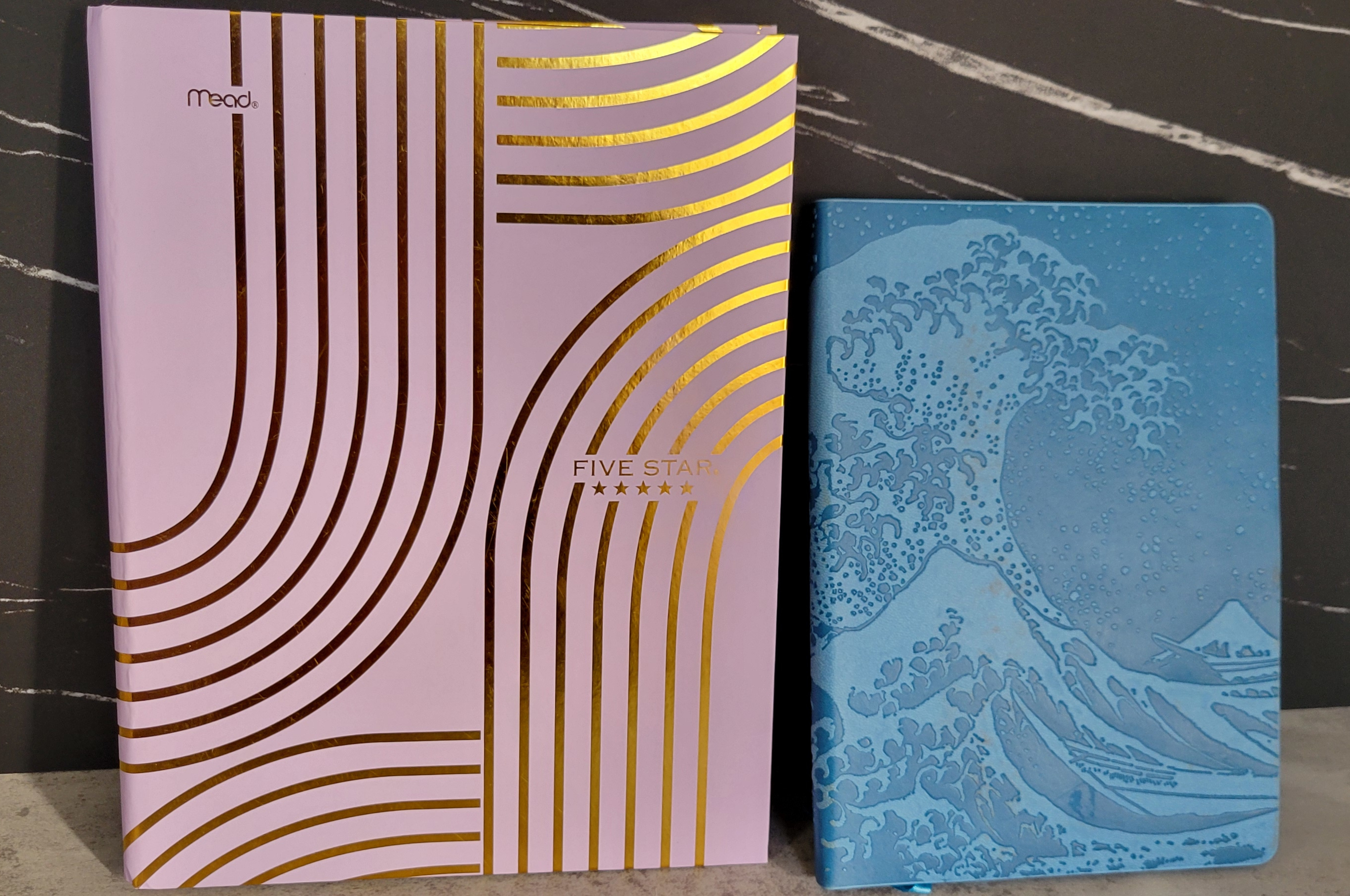 My son got both of these notebooks for me for Christmas in 2024. He knows my tastes pretty well, since purple is my favorite color and I love the gold accents. And the blue one has sprayed edges and is just beautiful overall.