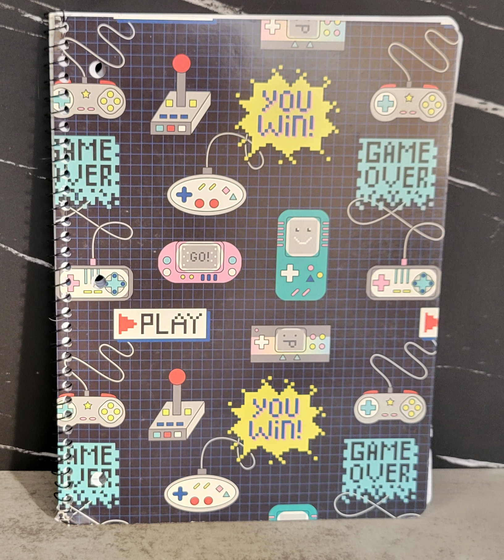 My daughter walked to a nearby Dollar General with her friend when they were hanging out at the friend’s grandparents’ house when she was a pre-teen several years ago. She came home with this notebook for me, with the idea that maybe I could use it to keep my gaming notes (because I do tend to take notes a lot when playing certain video games). It’s another one that I didn’t count as part of my collection until recently, this time because it’s basically just a regular spiral notebook, but that shouldn’t mean it doesn’t get counted. Plus, it has a fun cover!