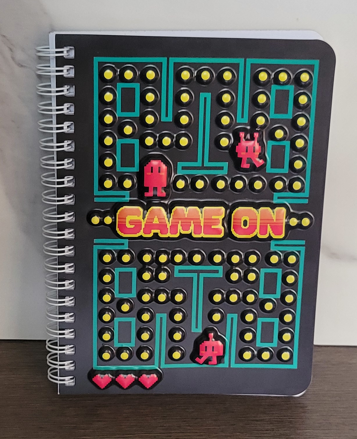 I didn’t really expect to find a notebook of interest at Dollar Tree, and in fact didn’t think to look when we were there looking for cheap Christmas decorations, but my husband found this for me. It’s pretty small but cute.