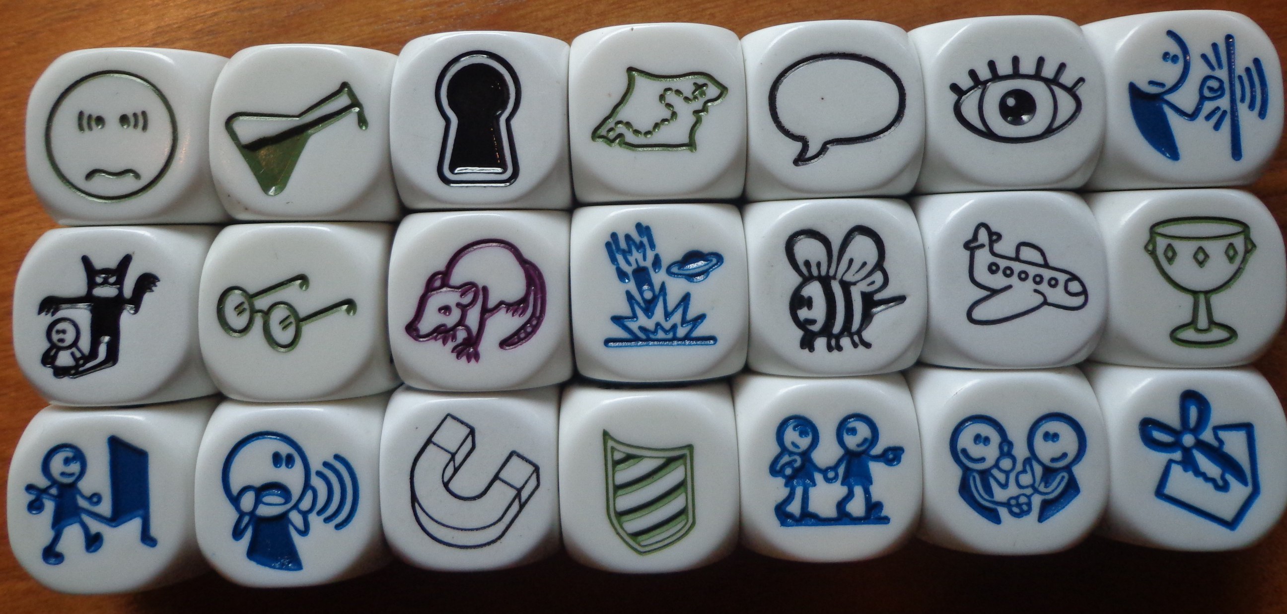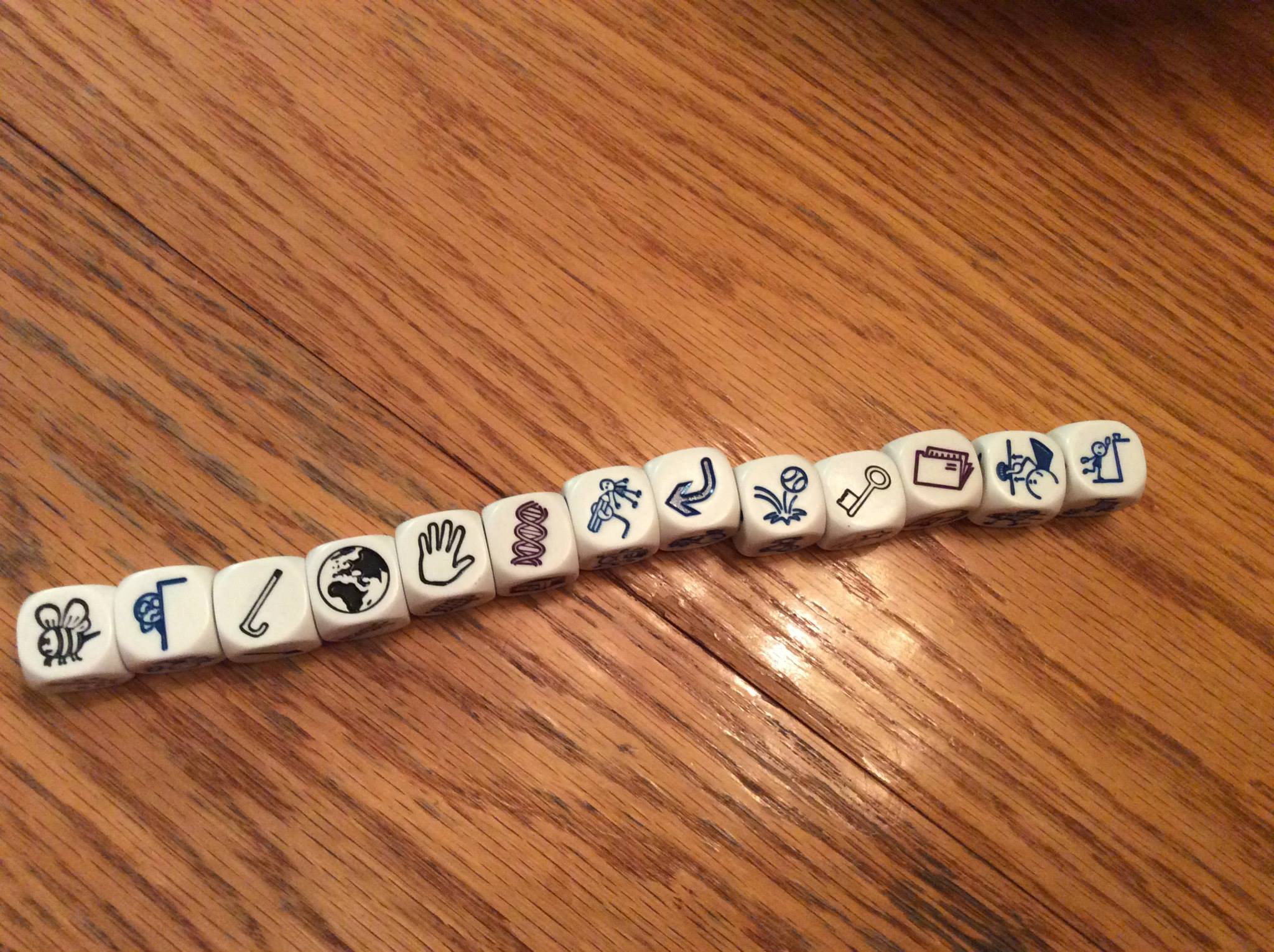 I’ve played with the cubes in groups a few times, and it’s fun to see what we come up with. When we first got the dice, my husband thought they may be useful for me as a writer, though I didn’t think it was likely. I believe one of the first things I said was that I didn’t know if the themes of the dice would really fit into my story world.